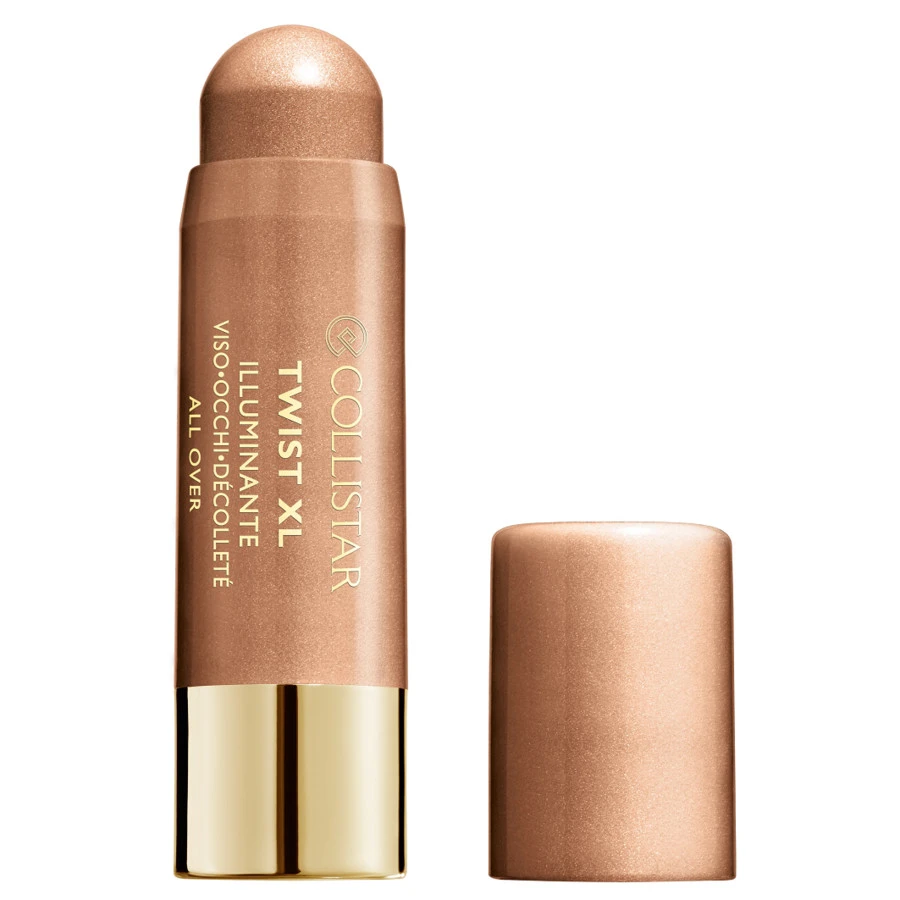 Twist XL Illuminante viso-occhi-décolleté Beige Dorato e Bronzo Dorato: due nuances super shiny per un illuminante in crema estremamente versatile. Ideale per creare punti luce e sapienti giochi ottici che valorizzino viso e scollatura, Twist XL Illuminante è un perfetto all-over per esaltare l’abbronzatura. Per osare di più, provate a stenderne un velo sulle mani o nelle zone del corpo più seducenti… Il finish, sottile e metallico, è particolarmente sofisticato e lo rendono un alleato indispensabile per completare il proprio golden look.