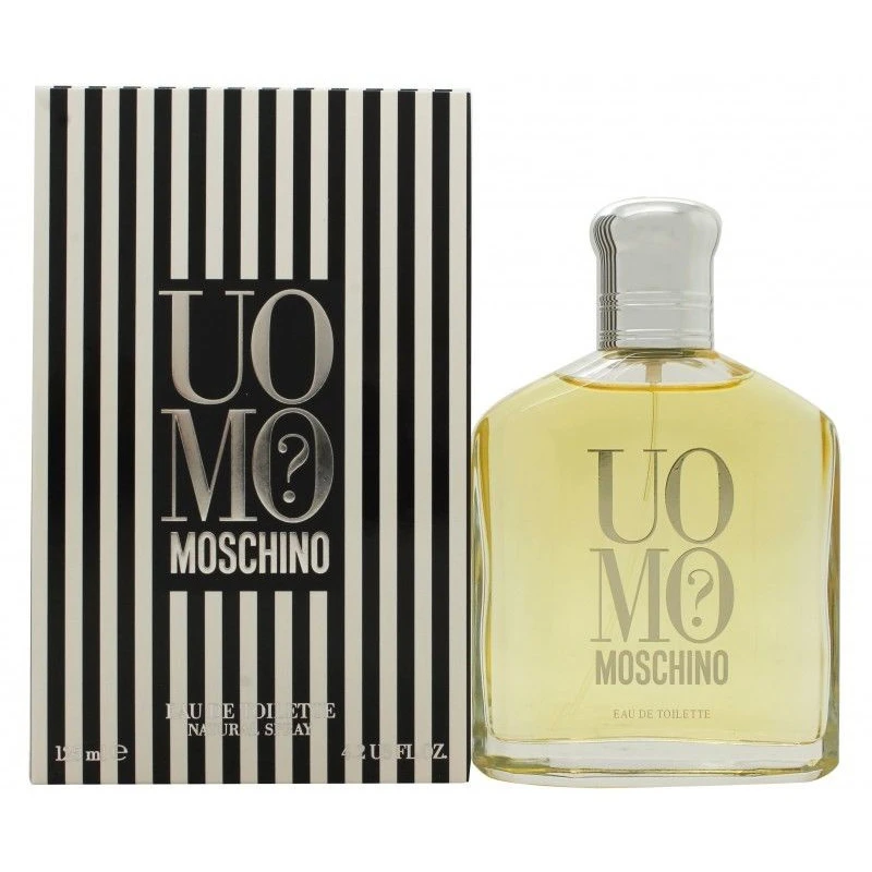 Uomo? di Moschino è un profumo del gruppo Legnoso Floreale Muschiato da uomo. Uomo? Le note di testa sono Coriandolo, Mandarino Cinese, Aldeidi e Legno di Rosa Brasiliano; le note di cuore sono Ciclamino, Cannella, Salvia Sclarea e Labdano; le note di base sono Muschio Animale, Cedro, Ambra Grigia e Assenzio Romano.